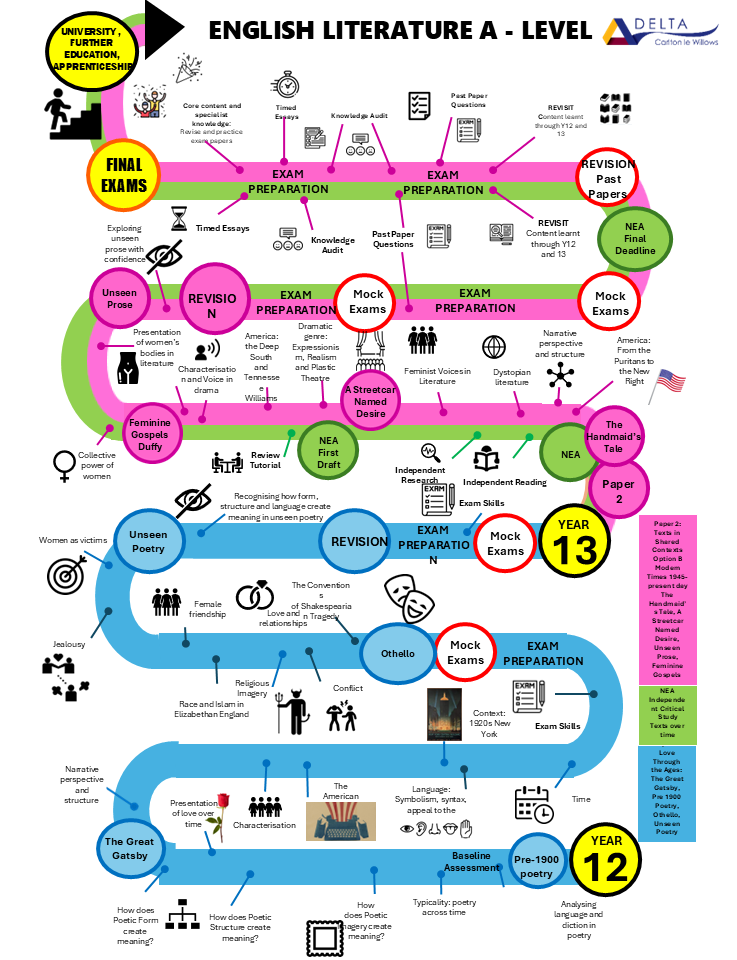 We believe that students deserve a broad and ambitious English curriculum, rich in skills and knowledge, which ignites curiosity and prepares them well for future learning or employment. Our English curriculum will give students the opportunity to: